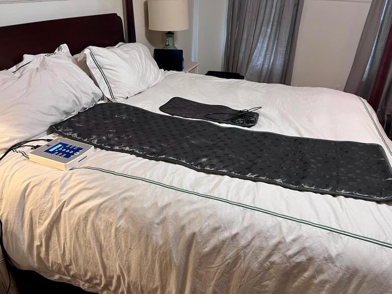 A good mat should send the frequencies at least a meter in all directions past the mat surface. So, if in bed with another person, with certain brands that can do this, I don't recommend a 2nd mat or a 2nd controller if it can only be used with one mat at a time. The QRS mat, which is a super high frequency mat, I have had people not even lay on the mat and lay next to it for 24 minutes and they say the same thing about their experience as if they were on top of the mat. The frequencies go in all directions.
